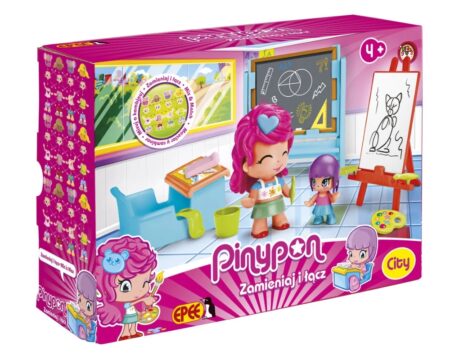 Czas na lekcję plastyki! Zbierz swoje Pinypon w klasie, w której mogą rozwijać swoją wyobraźnię i uczyć się technik malarskich pod okiem nauczyciela.